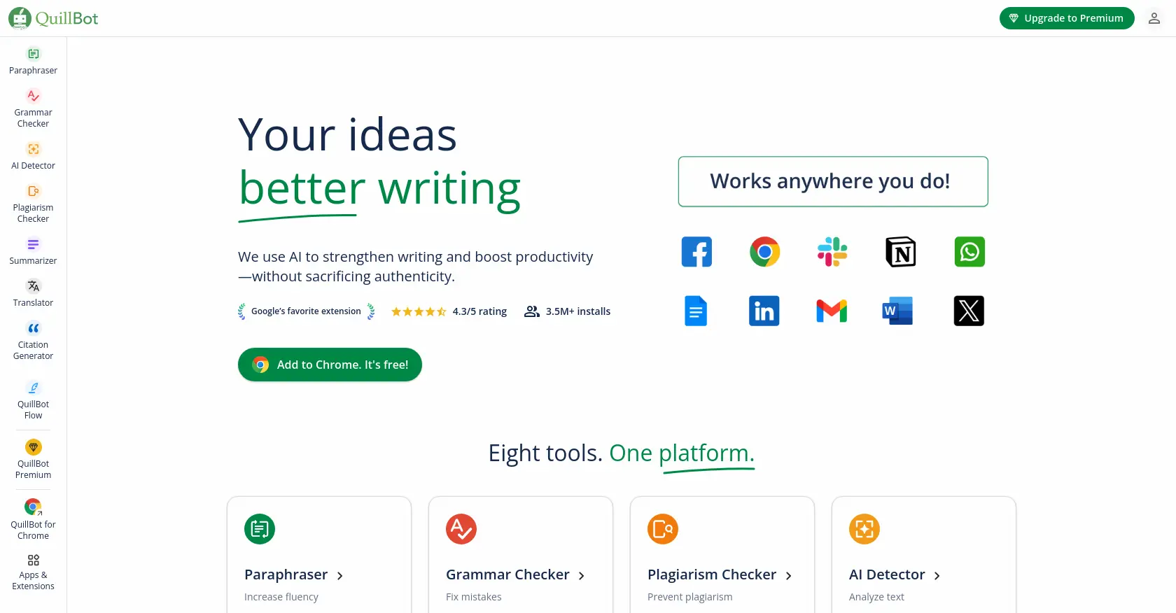 Quillbot helps students rewrite paragraphs, simplify explanations and improve sentence flow. It is useful during editing stages of essays or reports when students want to improve clarity and avoid repetitive writing.