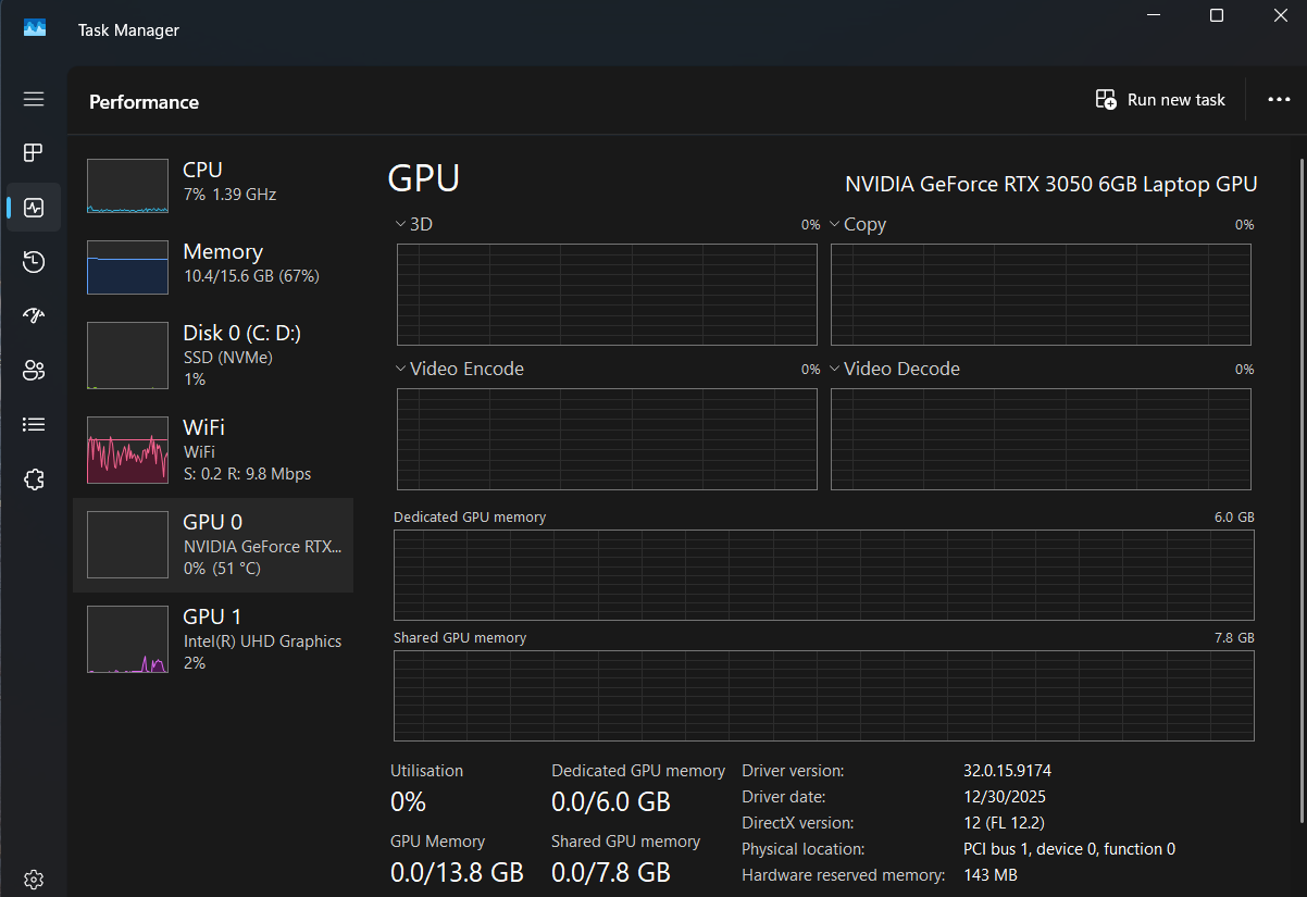 A common misunderstanding is that more shared GPU memory means better performance. In reality, the opposite is true. Shared GPU memory is significantly slower than dedicated VRAM.